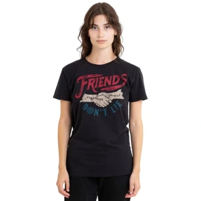 Stranger Things Friends Don't Lie Ladies T Shirt, Black, XX Large