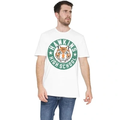 Stranger Things Hawkins High Badge Unisex T Shirt, White, XXX Large
