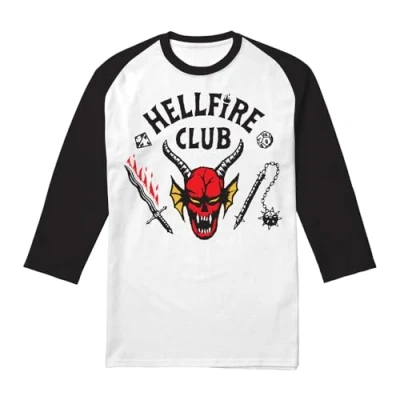 Stranger Things Hellfire Club Unisex T Shirt, White/Black, Medium