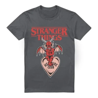 Stranger Things Hellfire Heart Unisex T Shirt, Charcoal, XX Large