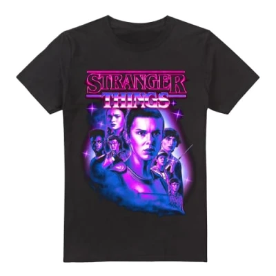 STRANGER THINGS UNISEX T-SHIRT FOR MEN & WOMEN: Crafted from premium ringspun cotton, our T-shirts are the epitome of timeless style; embrace your individuality with a look as distinct as you are; created for everyday wear, our tees feature a breathable all-season mid-weight weave, ensuring comfort in a versatile tagless design; beyond ordinary, our short-sleeve tee is built to last VERSATILE FIT: Whether you're an icon, influencer, or a myth in the making, discover a facet for every version of yourself; pre-shrunk for the supreme fit, our tees are meant to be worn daily; with a crew neckline, short sleeves, regular silhouette, and straight hemline, this top is designed for comfort; casual and classic, it's the ideal choice for any occasion; only good vibes here OFFICIALLY LICENSED - Discover exeptional style with our officially licensed pop culture designs! Created by our in-house graphic art team, each piece is a proud representation of craftsmanship, meticulously designed and printed in the UK; showcase your favorite characters and themes, making every wear a statement of your unique style! EFFORTLESS CARE: From school and work to hanging out with mates, our classic tee is tailored for the real world; no complicated care instructions – simply wear, wash, repeat; launder cold and tumble or hang dry to maintain the longevity of your new favourite shirt GIFTING OPTION: Ideal for sharing the love, our thoughtfully crafted and vividly rendered T-shirts are for any superfan; kit your loved ones out for their next birthday, holiday, themed event, Christmas or special occasion
