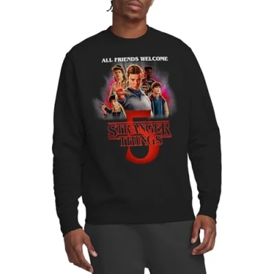 STRANGER THINGS - SEASON FIVE UNISEX SWEATSHIRT: Express your authenticity with a look as unique as you are. Designed for daily wear, our sweatshirt showcases a breathable all-season mid weight weave in a versatile tagless top that pairs with everything from freshly pressed jeans, to your favourite sweatpants. Beyond basic, our long-sleeve sweatshirt is made to go the distance. FIT FOR EVERY SOUL: Icon, influencer, or myth-in-the-making... find a facet for every version of you. Pre-shrunk for the perfect fit, our sweatshirt was born to be worn. Boasting a crew neckline, ribbed cuffs and hem, and a standard silhouette, this officially licensed top is made to be lived in. Casual and classic, it's the ideal topper for anything your wardrobe dish out. Only good vibes here. OFFICIALLY LICENSED - Discover exeptional style with our officially licensed pop culture designs! Created by our in-house graphic art team, each piece is a proud representation of craftsmanship, meticulously designed and printed in the UK. Showcase your favorite characters and themes, making every wear a statement of your unique style! EFFORTLESS CARE: From school and work to hanging out with mates, our sweatshirt is tailored for the real world. No complicated care instructions – simply wear, wash, repeat. Launder cold and tumble or hang dry to maintain the longevity of your new favourite pullover. PERFECT GIFTING OPTION: Ideal for sharing the love, our thoughtfully crafted and vividly rendered sweatshirts are perfect for any superfan. Kit your loved ones out for their next birthday, holiday, themed event, Christmas or special occasion.