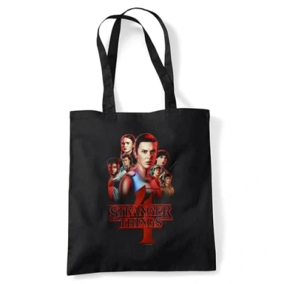Stranger Things - Season Four TOTE BAG : 100% Cotton Bag for Life with Long Handles, can be carried by hand or over the shoulder. SHRINK & FADE RESISTANT - This design has amazing color vibrancy and is built to last. Made from 100% cotton. EASY CARE: Sponge clean only OFFICIALLY LICENSED - Discover exeptional style with our officially licensed pop culture designs! Created by our in-house graphic art team, each piece is a proud representation of craftsmanship and meticulously designed. Showcase your favorite characters and themes, making every wear a statement of your unique style! PERFECT GIFTING OPTION: Ideal for sharing the love, our thoughtfully crafted and vividly rendered Tote Bags are perfect for any superfan. Kit your loved ones out for their next birthday, holiday, themed event, Christmas or special occasion.