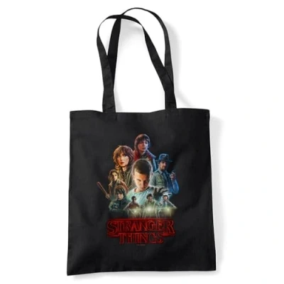Stranger Things TOTE BAG : 100% Cotton Bag for Life with Long Handles, can be carried by hand or over the shoulder. SHRINK & FADE RESISTANT - This design has amazing color vibrancy and is built to last. Made from 100% cotton. EASY CARE: Sponge clean only OFFICIALLY LICENSED - Discover exeptional style with our officially licensed pop culture designs! Created by our in-house graphic art team, each piece is a proud representation of craftsmanship and meticulously designed. Showcase your favorite characters and themes, making every wear a statement of your unique style! PERFECT GIFTING OPTION: Ideal for sharing the love, our thoughtfully crafted and vividly rendered Tote Bags are perfect for any superfan. Kit your loved ones out for their next birthday, holiday, themed event, Christmas or special occasion.