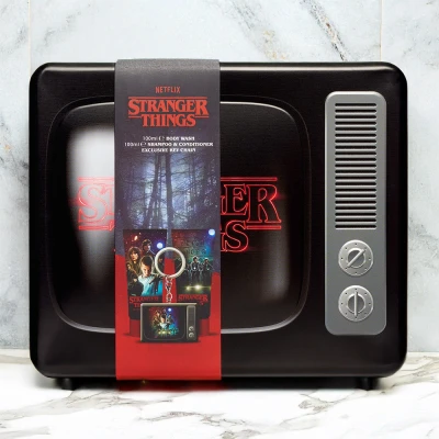 Step into the eerie world of Hawkins with the Stranger Things Static TV Tin Gift Set. This unique set includes 100ml shampoo and conditioner, alongside a 100ml body wash, each crafted to keep you feeling fresh while paying homage to the iconic Netflix series. The standout feature is the exclusive metal keychain, perfect for fans wanting to carry a piece of the Upside Down with them wherever they go. All the products come neatly packaged in a retro TV-style storage tin that captures the show’s nostalgic 80s vibe. This practical tin not only keeps your toiletries organised but also makes a stylish display piece for any Stranger Things enthusiast’s shelf or bathroom. The static screen design perfectly echoes the mysterious signals from the series, making it a conversation starter as well as a handy storage solution. Officially licensed Stranger Things merchandise, this gift set is ideal for fans of the show or anyone looking for a distinctive and fun grooming kit. Whether for personal use or as a thoughtful present, the Static TV Tin Gift Set brings the thrill of Stranger Things into your daily routine with style.