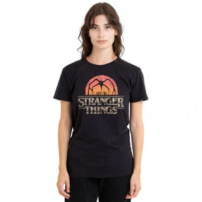 STRANGER THINGS - SEASON FIVE LADIES T-SHIRT FOR WOMEN: Crafted from premium ringspun cotton, our T-shirts are the epitome of timeless style. Embrace your individuality with a look as distinct as you are. Created for everyday wear, our tees feature a breathable all-season mid-weight weave, ensuring comfort in a versatile tagless design. Beyond ordinary, our short-sleeve tee is built to last. VERSATILE FIT: Whether you're an icon, influencer, or a myth in the making, discover a facet for every version of yourself. Pre-shrunk for the perfect fit, our tees are meant to be worn daily. With a crew neckline, short sleeves, regular silhouette, and straight hemline, this top is designed for comfort. Casual and classic, it's the ideal choice for any occasion. Only good vibes here. OFFICIALLY LICENSED - Discover exeptional style with our officially licensed pop culture designs! Created by our in-house graphic art team, each piece is a proud representation of craftsmanship, meticulously designed and printed in the UK. Showcase your favorite characters and themes, making every wear a statement of your unique style! EFFORTLESS CARE: From school and work to hanging out with mates, our classic women's tee is tailored for the real world. No complicated care instructions – simply wear, wash, repeat. Launder cold and tumble or hang dry to maintain the longevity of your new favourite shirt. PERFECT GIFTING OPTION: Ideal for sharing the love, our thoughtfully crafted and vividly rendered T-shirts are perfect for any superfan. Kit your loved ones out for their next birthday, holiday, themed event, Christmas or special occasion.