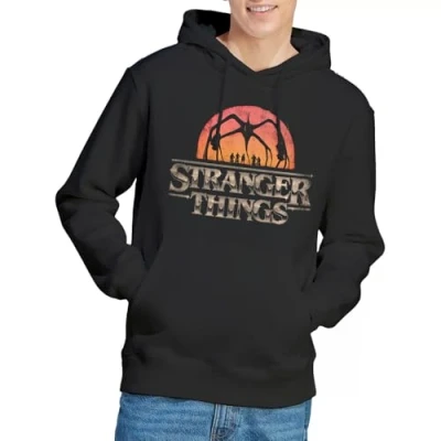 Stranger Things Sunset Logo Unisex Hoodie, Black, Medium