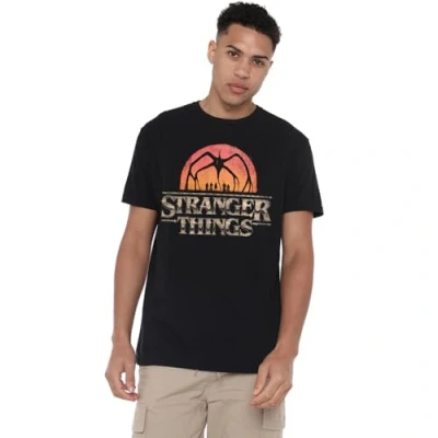 STRANGER THINGS - SEASON FIVE UNISEX T-SHIRT FOR MEN & WOMEN: Crafted from premium ringspun cotton, our T-shirts are the epitome of timeless style. Embrace your individuality with a look as distinct as you are. Created for everyday wear, our tees feature a breathable all-season mid-weight weave, ensuring comfort in a versatile tagless design. Beyond ordinary, our short-sleeve tee is built to last. VERSATILE FIT: Whether you're an icon, influencer, or a myth in the making, discover a facet for every version of yourself. Pre-shrunk for the perfect fit, our tees are meant to be worn daily. With a crew neckline, short sleeves, regular silhouette, and straight hemline, this top is designed for comfort. Casual and classic, it's the ideal choice for any occasion. Only good vibes here. OFFICIALLY LICENSED - Discover exeptional style with our officially licensed pop culture designs! Created by our in-house graphic art team, each piece is a proud representation of craftsmanship, meticulously designed and printed in the UK. Showcase your favorite characters and themes, making every wear a statement of your unique style! EFFORTLESS CARE: From school and work to hanging out with mates, our classic tee is tailored for the real world. No complicated care instructions – simply wear, wash, repeat. Launder cold and tumble or hang dry to maintain the longevity of your new favourite shirt. PERFECT GIFTING OPTION: Ideal for sharing the love, our thoughtfully crafted and vividly rendered T-shirts are perfect for any superfan. Kit your loved ones out for their next birthday, holiday, themed event, Christmas or special occasion.