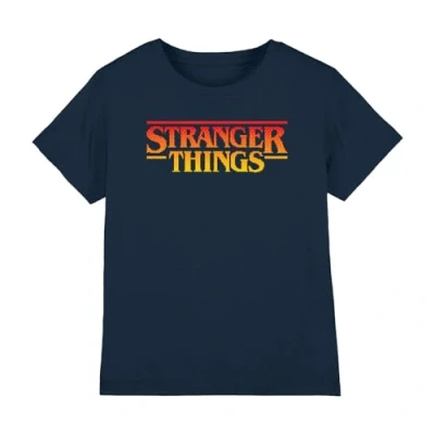 Stranger Things Sunset Pixel Logo Kids T Shirt, Navy, 12 13