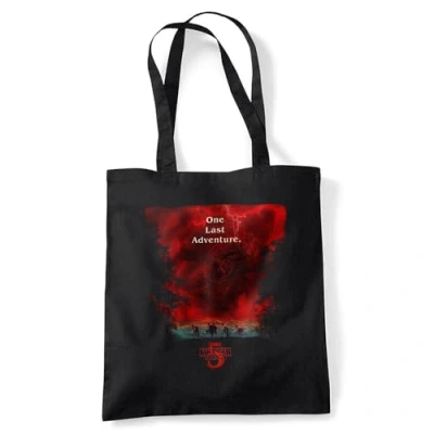Stranger Things - Season Five TOTE BAG : 100% Cotton Bag for Life with Long Handles, can be carried by hand or over the shoulder. SHRINK & FADE RESISTANT - This design has amazing color vibrancy and is built to last. Made from 100% cotton. EASY CARE: Sponge clean only OFFICIALLY LICENSED - Discover exeptional style with our officially licensed pop culture designs! Created by our in-house graphic art team, each piece is a proud representation of craftsmanship and meticulously designed. Showcase your favorite characters and themes, making every wear a statement of your unique style! PERFECT GIFTING OPTION: Ideal for sharing the love, our thoughtfully crafted and vividly rendered Tote Bags are perfect for any superfan. Kit your loved ones out for their next birthday, holiday, themed event, Christmas or special occasion.