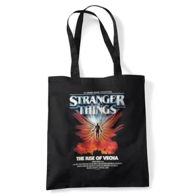 Stranger Things - Season Five TOTE BAG : 100% Cotton Bag for Life with Long Handles, can be carried by hand or over the shoulder. SHRINK & FADE RESISTANT - This design has amazing color vibrancy and is built to last. Made from 100% cotton. EASY CARE: Sponge clean only OFFICIALLY LICENSED - Discover exeptional style with our officially licensed pop culture designs! Created by our in-house graphic art team, each piece is a proud representation of craftsmanship and meticulously designed. Showcase your favorite characters and themes, making every wear a statement of your unique style! PERFECT GIFTING OPTION: Ideal for sharing the love, our thoughtfully crafted and vividly rendered Tote Bags are perfect for any superfan. Kit your loved ones out for their next birthday, holiday, themed event, Christmas or special occasion.