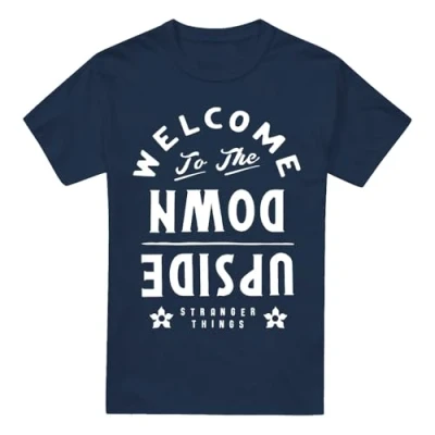 Stranger Things Welcome to The Upside Down Unisex T Shirt, Navy, X Large
