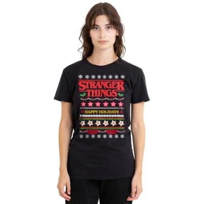 Stranger Things: season four ladies t-shirt for women: crafted from ringspun cotton, the t-shirts are the epitome of timeless style; embrace your individuality with a look as distinct as you are; created for everyday wear, the tees feature a breathable all-season mid-weight weave, ensuring comfort in a versatile tagless design; beyond ordinary, the short-sleeve tee is built to last Versatile fit: whether you're an icon, influencer, or a myth in the making, discover a facet for every version of yourself; pre-shrunk for the optimum fit, the tees are meant to be worn daily; with a crew neckline, short sleeves, regular silhouette, and straight hemline, this top is designed for comfort; casual and classic, it's the adequate choice for any occasion; only good vibes here Officially licensed: discover style with the officially licensed pop culture designs; created by the in-house graphic art team, each piece is a proud representation of craftsmanship, meticulously designed and printed in the UK; showcase your favorite characters and themes, making every wear a statement of your unique style Effortless care: from school and work to hanging out with mates, the classic women's tee is tailored for the real world; no complicated care instructions, simply wear, wash, repeat; launder cold and tumble or hang dry to maintain the longevity of your new favourite shirt Optimum gifting option: for sharing the love, the thoughtfully crafted and vividly rendered t-shirts are optimum for any superfan; kit your loved ones out for their next birthday, holiday, themed event, christmas or special occasion
