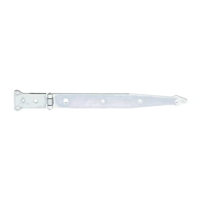 Material: galvanised steel, thick layer passivated Dimensions: strap length 400 mm - strap width 45 mm - hinge length 63 mm - hinge width 101 mm - material thickness 3.60 mm - number of holes 6 / 2 - hole diameter 6 / 9 x 9 mm Design: with riveted pin For simple board doors, cellar doors, etc., you can also use cross or throw hangers. While the screw-on flap on the post or wall side is relatively narrow in cross hangings, it is longer for throw hangings., Manufacturer: Gust. Alberts GmbH & Co.KG