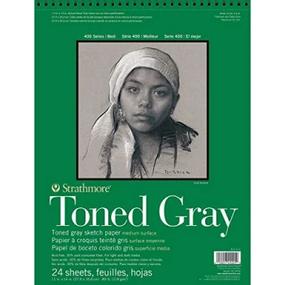 Strathmore 400 Toned 118gsm Paper Spiral Bound Sketchpad, Fine Grain, 11 x 14 in, 24 Sheets, For Professionals & Students