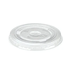 Flat, Recyclable PET cold cup lids. With straw slot. Size: 9oz. Colour: Clear. Pack of 1000.