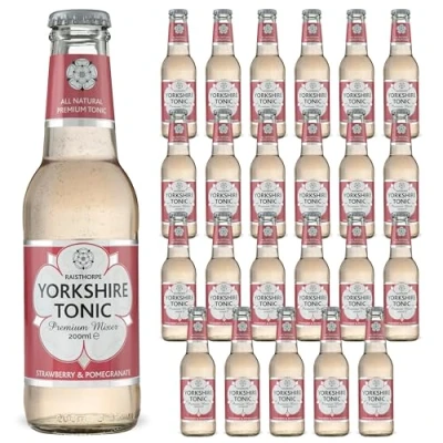 Strawberry & Pomegranate Tonic Water for Gin w/Sugar, Carbonated Water, Vitamin C Mixers Drinks, Vodka, Cocktails, Mocktails Raisthorpe Manor, 200ml, 24 Pk