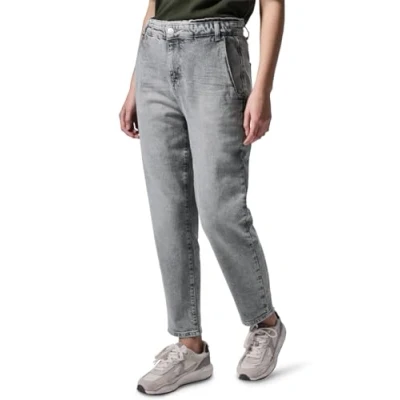 Jeans in loose fit High waist and tapered legs Side pockets Grey denim wash Cotton mix with stretch content