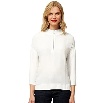 Street One shirt with 3/4 sleeves and stand-up collar with zip The women's shirt is in a mix of materials and has the sleeves are made from soft viscose