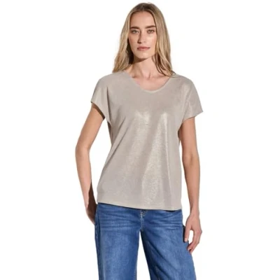 Street One Women's A322705 T Shirt with foil Print, Moonstone Sand, 14