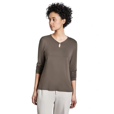 Street One Women's A322802 Shirt with Cut Out, Muddy Brown, 12