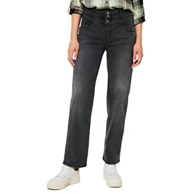 Street One jeans in casual fit, high waist with straight legs The grey women's jeans have a high waistband and straight legs, and can be perfectly combined with coloured tops