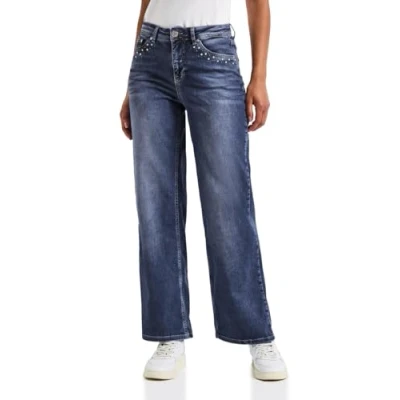 Street One Women's A379428 Wide Leg Jeans with Studs, Mid Blue Soft Washed, 27W x 30L