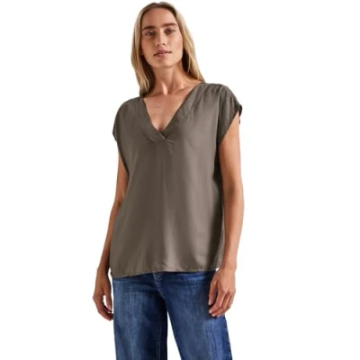 STREET ONE Women's 3412067 V Neck Blouse Shirt, Nomad Brown, 14