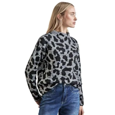 Street One Women's A303051 Cosy Sweater_Leo Jacquard, Heather Grey, 12