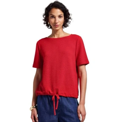 T-shirt Boat neck Short sleeve Drawstring hem Viscose mix with stretch content