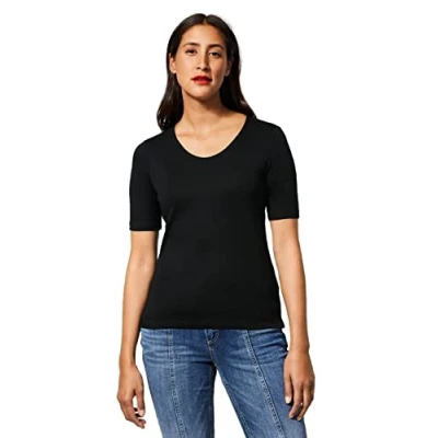 Amazon MarketplaceStreet One Shirt style Palmira with half sleeves and rounded V-neck in body-hugging cut, slightly tailored The T-shirt has a cotton lining on the front and is therefore opaque with optimal wearing comfort T-shirt Basic Plain colour