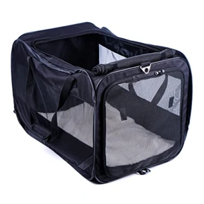 Streetwize Large Deluxe Foldable Fabric Pet Car Kennel Black, Puppies, Cats Travel Bed Carrier (SWPET20)