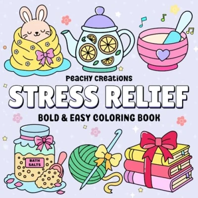 Stress Relief: Bold and Easy Coloring Book for Adults Kids. Fun, Simple, Relaxing Designs Featuring Cute Animals, Food, Flowers, Cozy ... More (Bold Books)