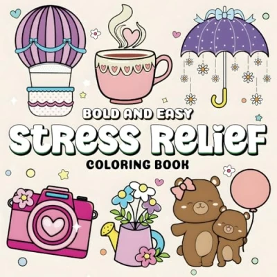 Stress Relief: Bold and Easy Coloring Book for Adults, Teens, Kids