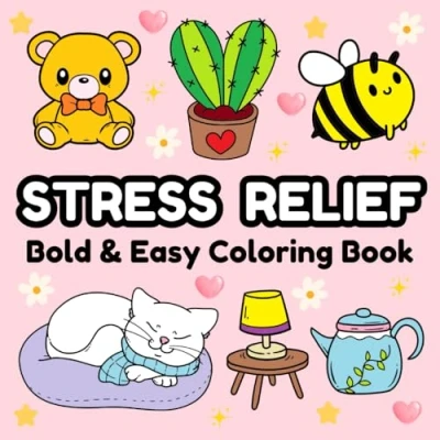Stress Relief Bold and Easy Coloring Book: Relaxation Designs For Adults, Teens Kids. Simple, Cute Big Illustrations Mindfulness.