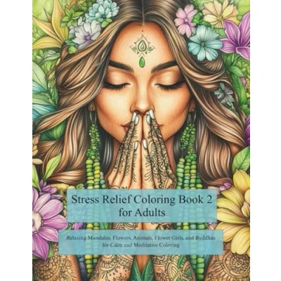Stress Relief Coloring Book 2 for Adults: Relaxing Mandalas, Flowers, Animals, Flower Girls, and Buddhas Calm Meditative