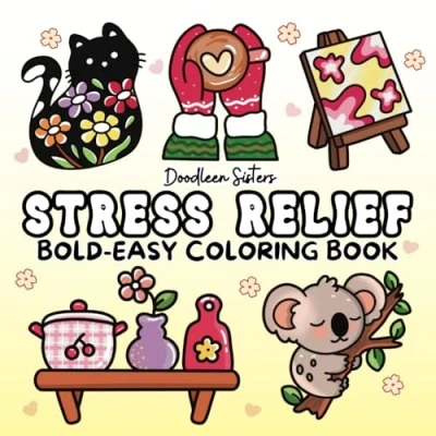 Stress Relief Coloring Book for Adults and Kids 52 Bold, Easy Simple Designs Relaxation Featuring Animals, Mandalas, Cute Things Many ... Coloring) (Bold Books)