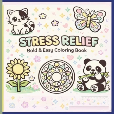 Stress Relief Coloring Book for Adults and Kids: 54 Bold Easy Designs Relaxation Animals, Flowers, Patterns, Landscapes Cute Fun Pages