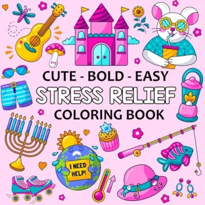 Stress Relief Coloring Book for Adults and Kids: Bold & Easy, Cute Simple Designs Relaxation Featuring Groovy Things (Bold Adult) Easy Book)
