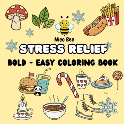 Stress Relief: Coloring Book for Adults And Kids, Bold Easy, Simple Big Designs Relaxation Featuring Animals, Landscape, Flowers, Patterns, Cute Things Many More