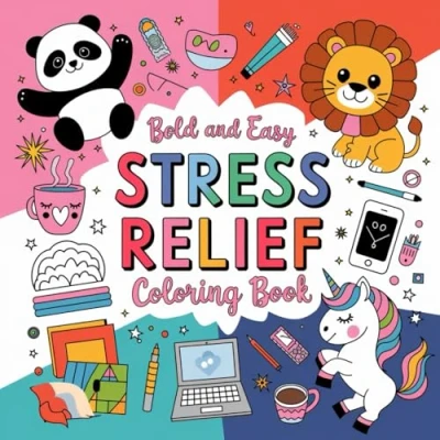 Stress Relief: Coloring Book for Adults and Kids, Bold Easy, Simple Big Designs Relaxation Fun