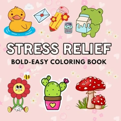 Stress Relief Coloring Book for Adults and Kids: Bold Simple Designs Relaxation Featuring Animals, Landscapes, Flowers, Patterns, More