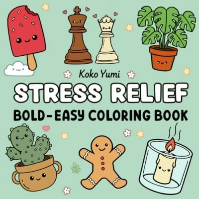 Stress Relief: Coloring Book for Adults and Kids, Cute, Bold Easy, Simple Big Designs Relaxation