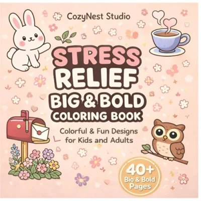 Stress Relief Coloring Book for Adults and Teens: Big & Bold Simple Designs Relaxation Easy Animals, Flowers, Landscapes, Patterns Cute Illustrations Beginners Creative Calm