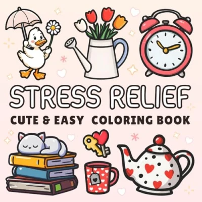 Stress Relief Coloring Book: for Adults and Teens, Bold Easy Designs Relaxation Featuring Comfy, Big Simple Drawings of Relaxing Items Cute Things (Cozy & Coloring)
