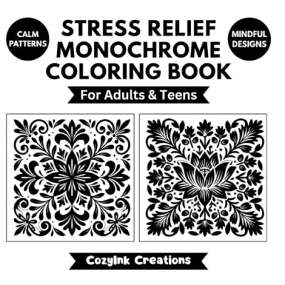 Stress Relief Monochrome Coloring Book for Adults: One Color Black Relaxing Mindful Designs Mindfulness Easy Calm Patterns Mandalas Teens & Seniors