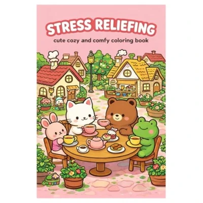 Stress Reliefing &cute Cozy and comfy coloring book: Whimsical Worlds, Peaceful Nature, Moments to Color Away