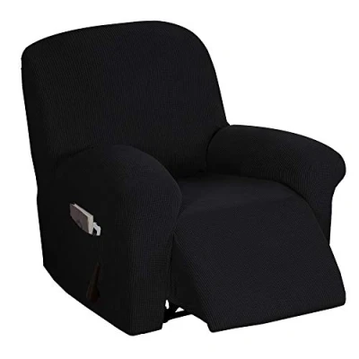 Stretch Recliner Cover Chair Covers for Living Room Slipcover with Side Pocket, Thick Soft Small Checked Jacquard, Fitted Standard/Oversized Recliner, Black