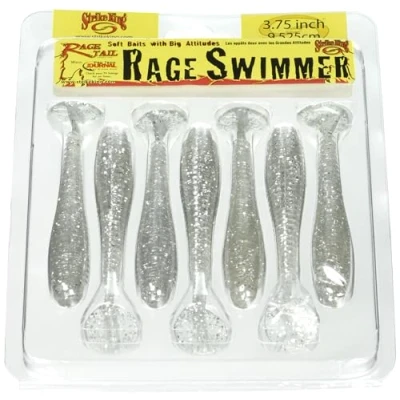 DYNAMIC SWIMMER: Designed to provoke an immediate reaction, the Strike King Rage Swimmer looks great out of the water, and even better below the surface. Its sleek nose cone and softly ribbed body closely replicate the contours found in nature. This soft plastic lure features a compact profile that works great in cool and cold water, with a Carolina Chrome color pattern that bass find irresistible ESSENTIAL TACKLE: Each Rage Swimmer uses customized high-grade plastics for superior action. Its thin, pancake-like tail pumps out frantic vibrations at any speed, allowing anglers to swim it slowly for highly pressured or post-frontal fish, or burn it rapidly to trigger aggressive reaction strikes VERSATILE PRESENTATION: Strike King's Rage Swimmer softbait offers an enticing swim—whether pinned to a jig, nose-hooked on a dropshot rig, or trailed behind a spinnerbait. A dynamite lure for bass, the Rage Swimmer is proven deadly on all other predators as well, including walleye, sauger, jumbo perch, slab crappie, and stream trout EXPERT DESIGN: Countless years of on-the-water experience and direct input from fishing’s most recognizable and successful professional anglers have helped Strike King develop the most effective artificial lures for bass and other predatory gamefish. An extensive field testing and product development process ensures that every Strike King lure is ready to help you catch more and bigger fish FISH WITH CONFIDENCE: When you fish with the Strike King Rage Swimmer, you fish with confidence because a bait designed and manufactured by the lure experts at Strike King is sure to help you catch more and bigger fish every time you hit the water