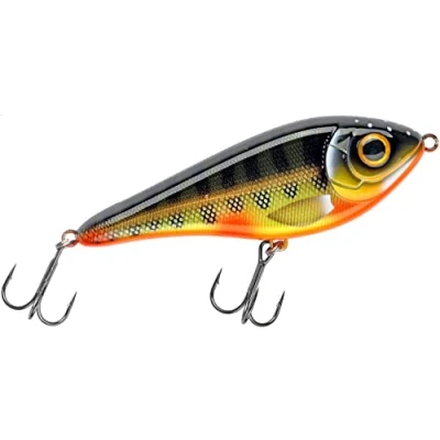 The Strike Pro Buster Swim jerkbait has a classic swimbait action. The jerkbait flashes powerfully from side to side while retrieving it and then slowly sinks down when you stop reeling it in, very effective for pike fishing! Equipped with two high quality 2/0 treble hooks. The Buster Swim is completely lead free and available in a wide range of tempting colours. Thanks to its weight of 66 grams, it can also be fished with lighter pike rods. Yet you can be sure that this jerkbait will also attract record pike. One of the best lures for pike fishing!